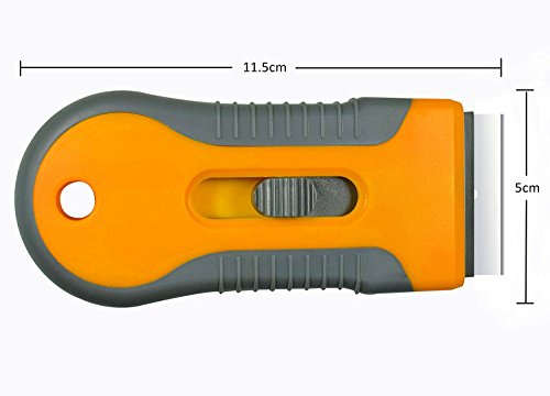- TOUCH: Built to last with strong gripper handle that is 3.5 inches long to get under the toughest car decals and stickers. These razor blade scrapers are built for tough jobs. Lightweight, practical and easy to place and store