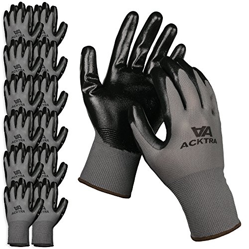 ACKTRA Nitrile Coated Nylon WORK GLOVES 12 Pairs / Dozen, Knit Wrist Cuff, Multipurpose, for Men & Women, Grey, Medium, WG003