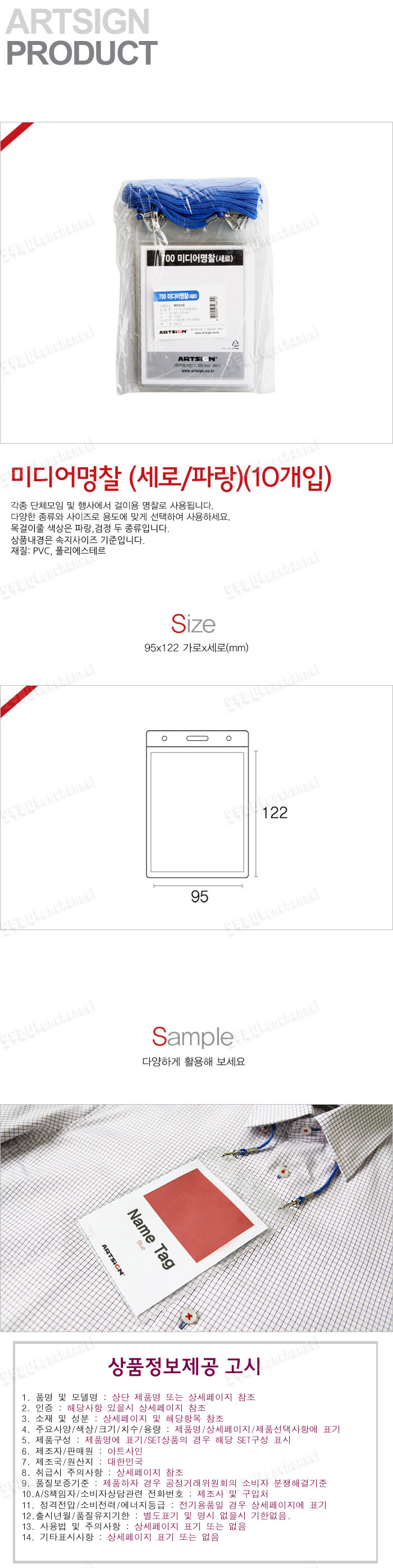 - 품명 및 모델명미디어명찰(세로/파랑/95x122mm/10개입)