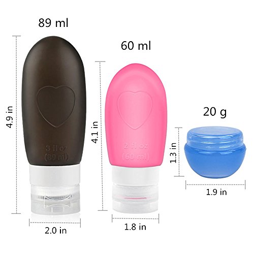 - Package includes: 2 pack 3 fl oz (89 ml) large travel bottles, 2 pack 2 fl oz (60 ml) small travel bottles and 2 pack 20 g cream jars.