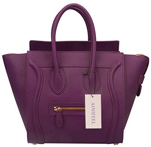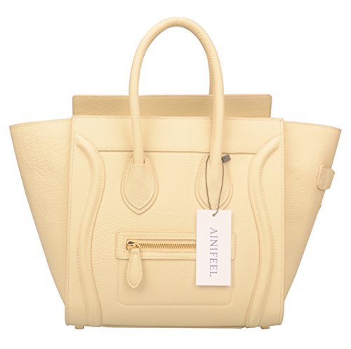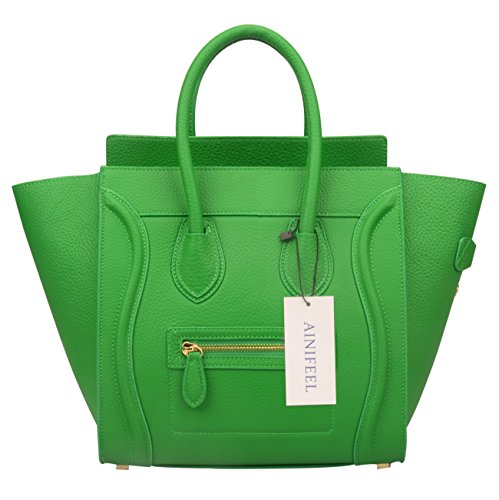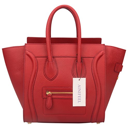 Ainifeel Women's Genuine Leather Smile Top Handle Handbag Purse