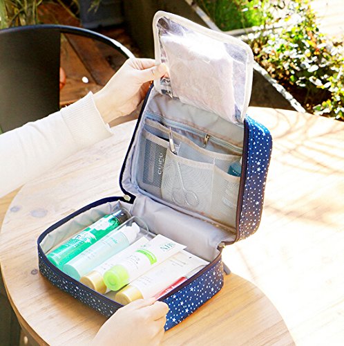 ONOR-Tech Portable Hanging Waterproof Large Capacity Travel Organizer Toiletry Wash Cosmetic Bag Makeup Storage Case Grooming Storage Bags (Dark Blue)