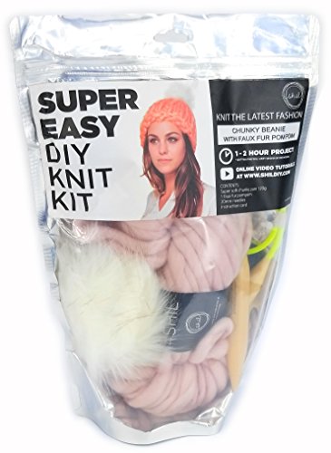 - David & Young Super Easy DIY Knitting Kit, Super Soft Chunky Beanie with High Quality Faux Fur Pom Pom