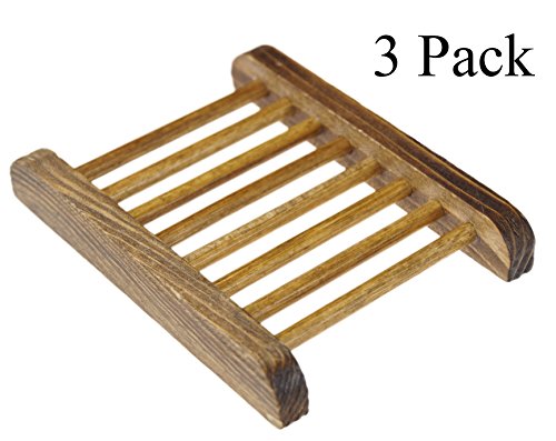MelonBoat 3 Pack Country Style Wood Shower Soap Dish Set, Wooden Soap Saver Holder, Antiqued Dark Brown, Ladder