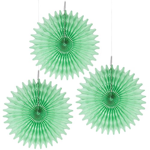 Floral Reef Set of 3 - 8" MINT GREEN Paper Tissue Rosettes Fan Medallions Hanging Home Decoration Wedding Party (3 Pack)