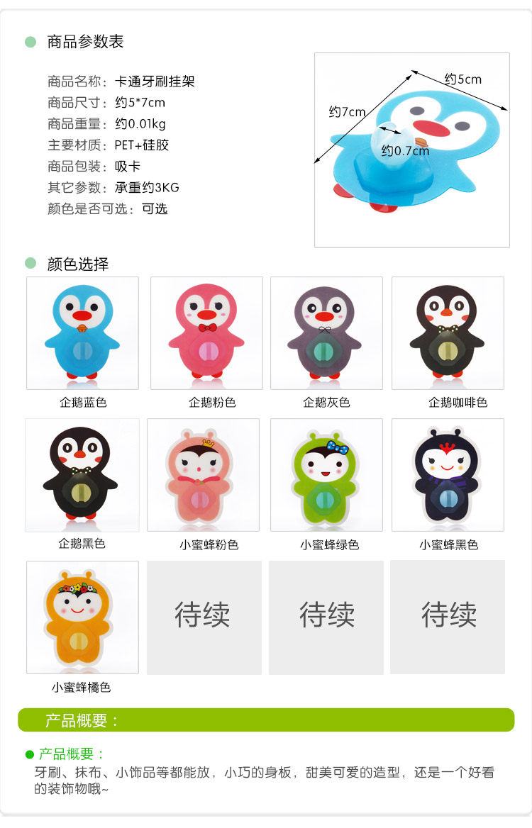 创意可爱强力粘胶牙刷架 吸壁式卡通动物情侣牙刷挂架牙具架