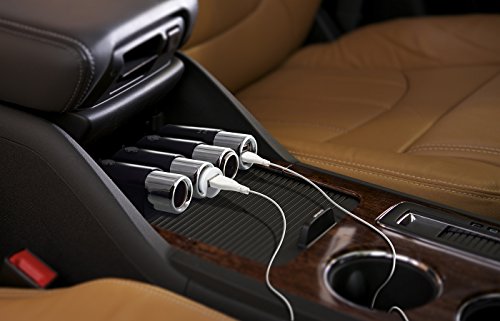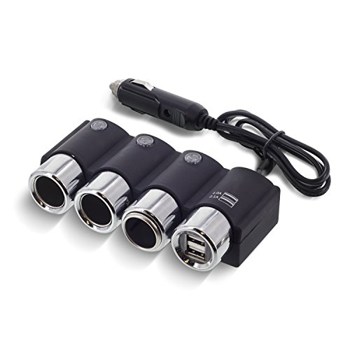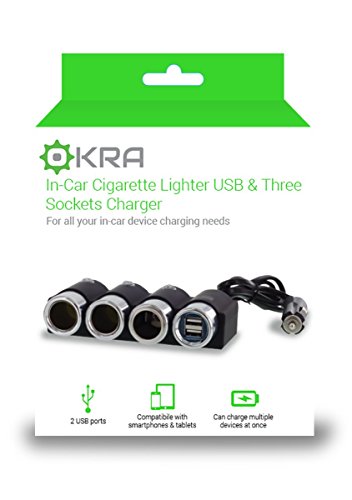 Okra In-car 3 Sockets Cigarette Lighter DC 12V/24V Car Charger Splitter Multiplier + 2.1A Dual USB Ports for all Apple or Android Smartphones & Tablet GPS (3 Sockets + 2 USB Ports)