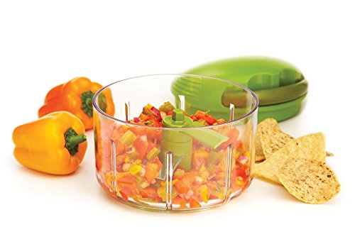 Whipping up something delicious and healthy just go amazingly easy with the kuhn rikon swiss pull chop. It takes only 6 pulls to make salsa. Sharp stainless blades chop, mince or puree dips, sauces, soups, desserts and more in seconds. Minimal prep and clean up beats food processors every time.