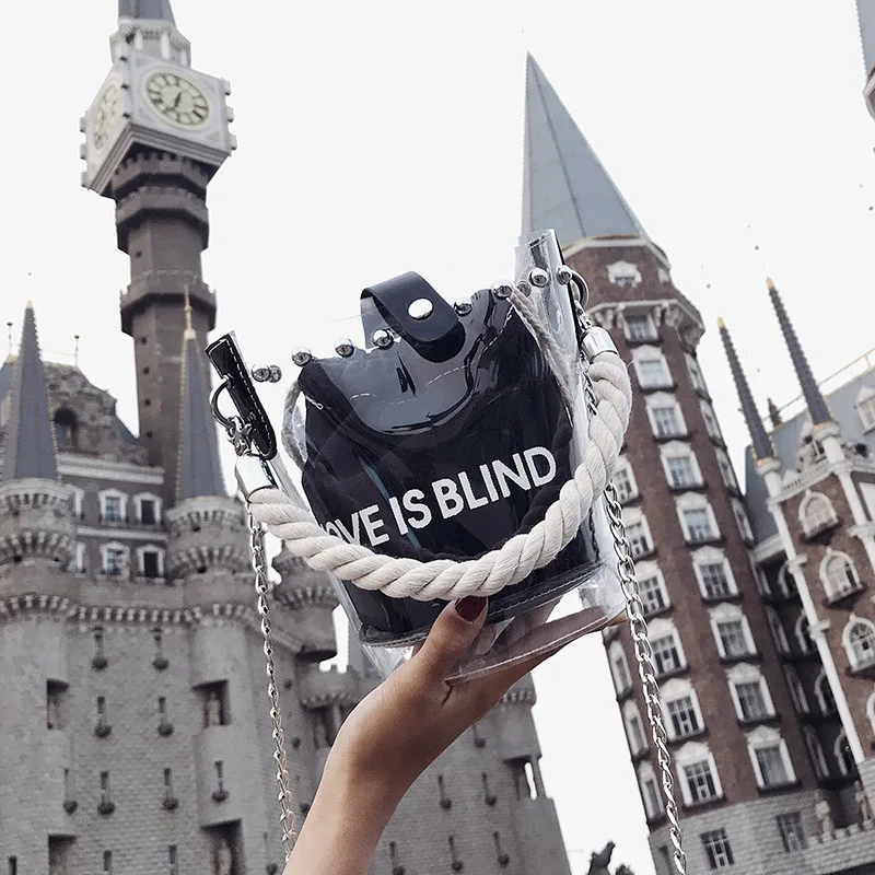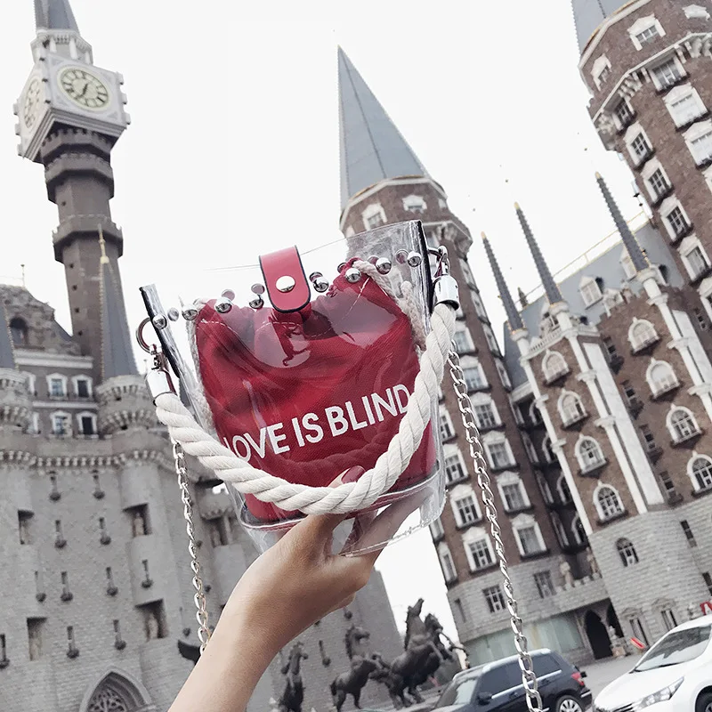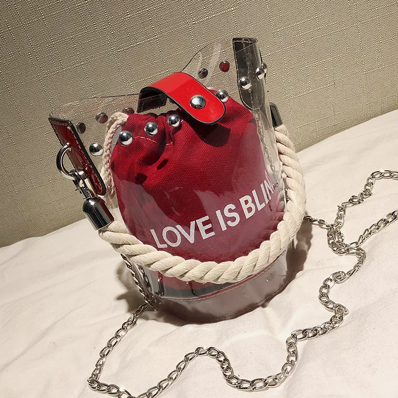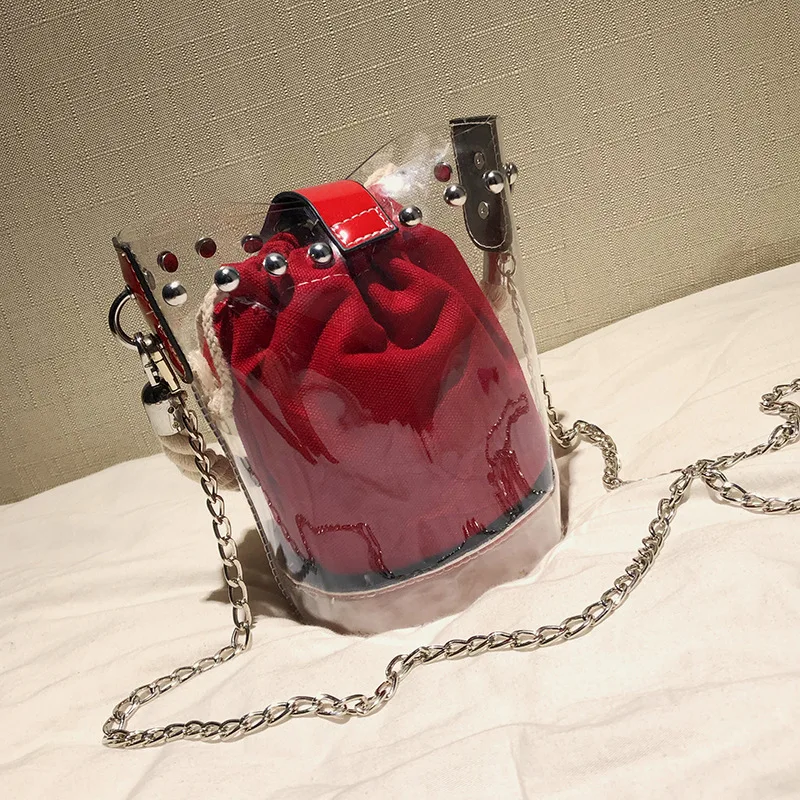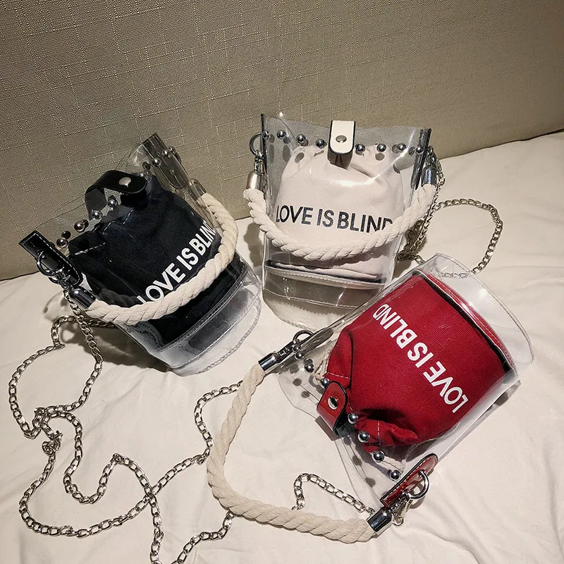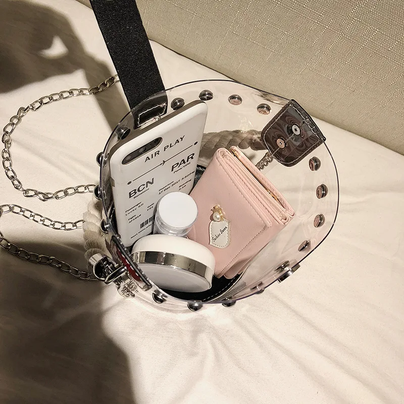 pvc bucket shoulder bags:fashion trendy girls small purse