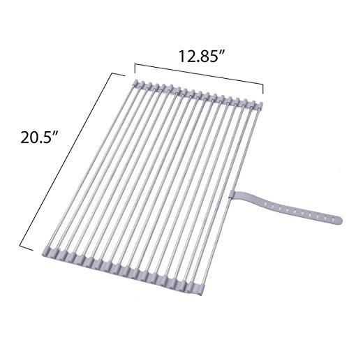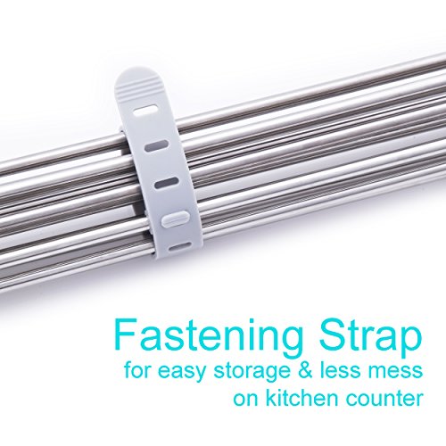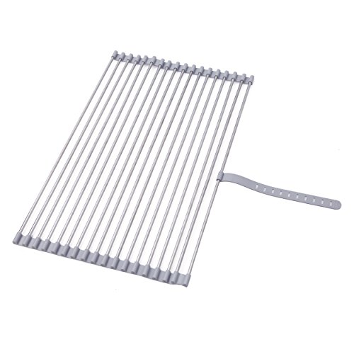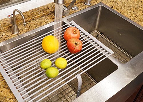 Stainless Steel Roll-up Folding Drying Rack Colander 20.5" X 12.5" Wide w/ Built on Hook and Lo...