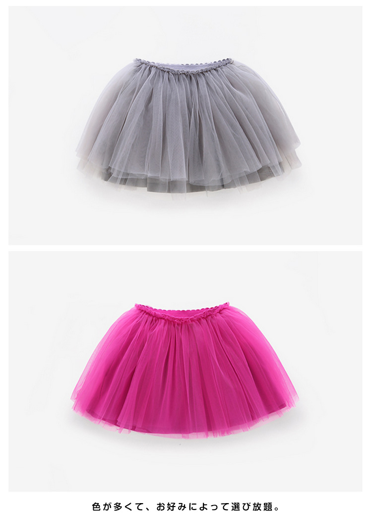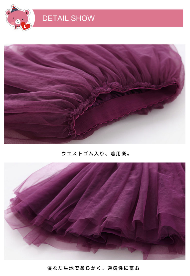 | ふんわりとしてキュートなチュールスカート。ボリュームが出るチュール素材と二層裾のデザインの組み合わせ、立体感アップとともに、可愛いな雰囲気もプラス。色が多くて、お好みによって選び放題。季節を問わず、合わせやすい便利なアイテム。 | |