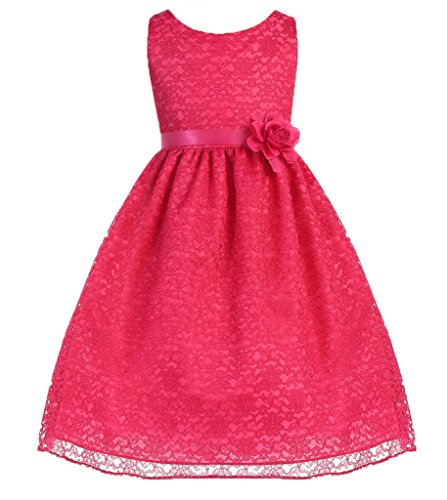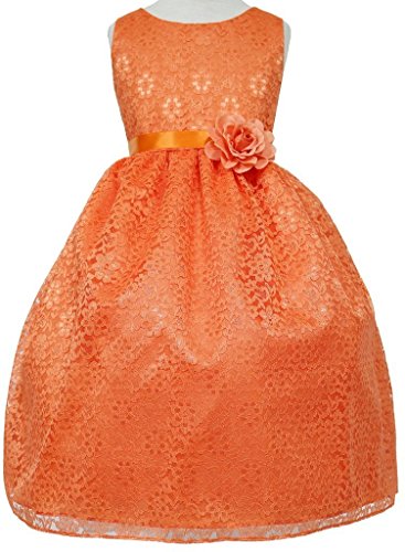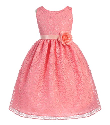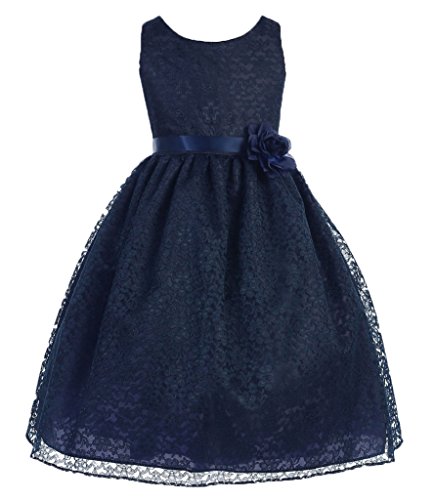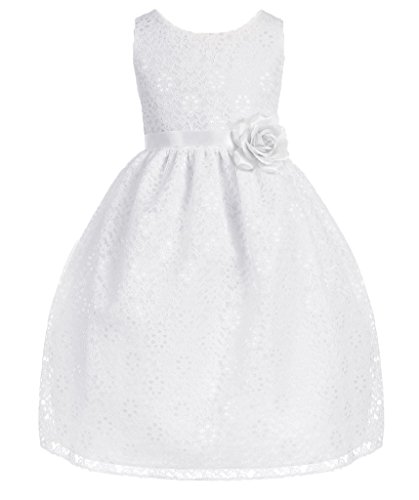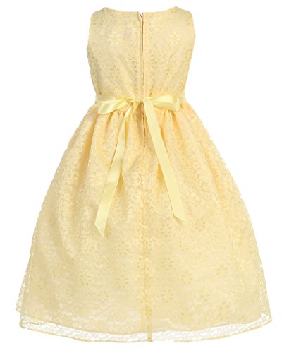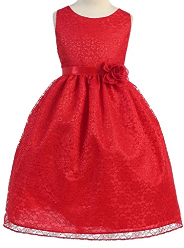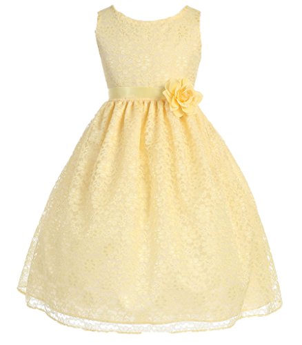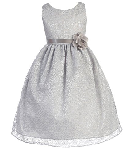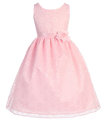 This dress is perfect for any formal event! The adorable dress features a gorgeous lace overlay. A fabulous flower and satin sash accents the waist of this lovely dress. Have your princess wear this dress for Flower Girl Dress, Easter Dress, and other Formal Events.Feature