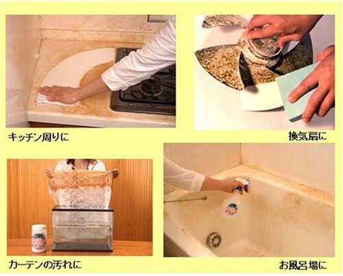 · Bath, toilet, ventilation fan, range, carpet, vinyl cloth ⇒ 15 ~ 30 g / hot water 500 ml (spray use)