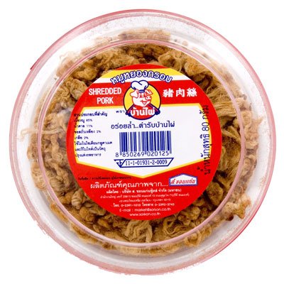-. Feature : pork snack, crispy dried pork / eat as a snack or with porridge rice / take it anywhere
