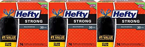 (Hefty)/Household Supplies/Paper Plastic/DIRECT FROM USA/Hefty Strong Large Trash Bags KozIjc, 30 Gal (Multipurpose Unscented, Drawstring), 74 ct, Pack of 3