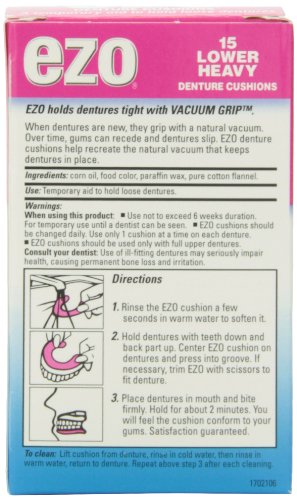 Ezo Denture Cushions, Lower Heavy, 15 Cushions (Pack of 6)