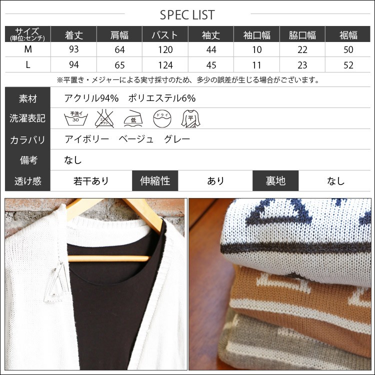 L:着丈 94cm 肩幅 65cm バスト 124cm 袖丈 45cm 袖口幅 11cm 脇口幅 23cm 裾幅 52cm