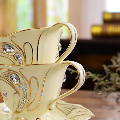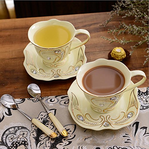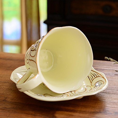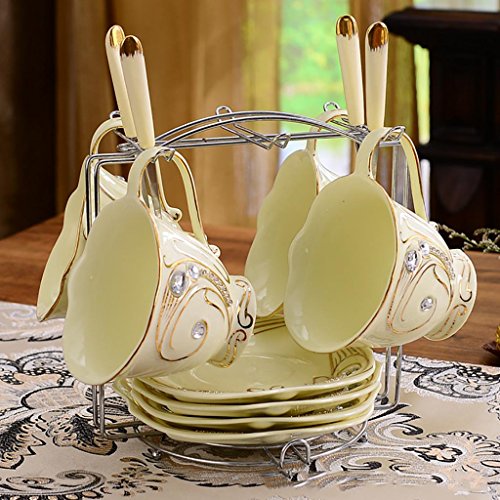 -. Feature : Material: ceramic / Size: saucer diameter 15cm, Cup-caliber 8.5cm, high 14cm / Contains 4 cups, 4 saucers, 4 spoons, a stainless steel shelf / Tea or coffee is a good choice / Can be used as a gift