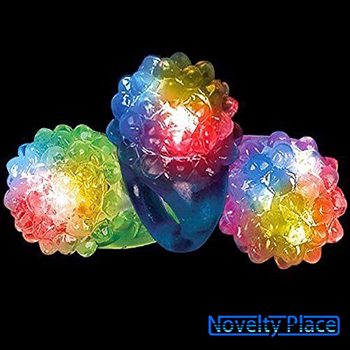 - Feature : Premium Quality - Don't Buy Those Cheap Generic Knockoffs wiith High DOA! We Use Stronger Battery and More Durable Rubber! / Party Favors - They Are Great Party Favors, Costume Accessories and Give Aways for Kids! / Flashing Rainbow Lights - The Rings Are Bumpy and The Lights Flash by Themselves. Very Eye-Catching in The Dark! / Package Contents - 96 Led Bumpy Rings (Assorted Colors) / Authentic Product - Please Look for the [Novelty Place] Logo and Sold ONLY by Novelty Place.