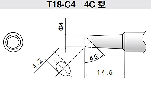 Hakko T18-C4 - T18 Series Soldering Tip for Hakko FX-888/FX-8801 - Bevel - 4 mm/45? x 14.5 mm