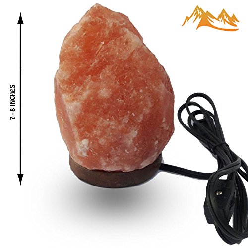 Handmade Natural Himalayan Salt Lamp 6 - 7 lbs, 7 - 8 Inches, Shinny Wooden Base, 1 Bulb, 6 Feet Long UL approved Cord, Dimer Switch