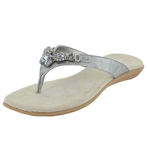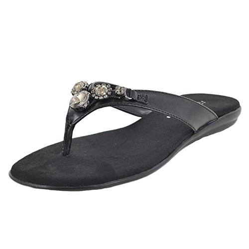 Luxe cushion and jewel accents perfect this casual sandal.