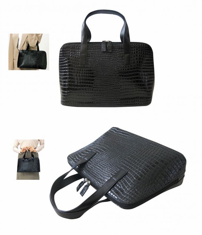 | 端正で気品あるフォルムと質感♪ 牛革クロコのハンドバッグ | |