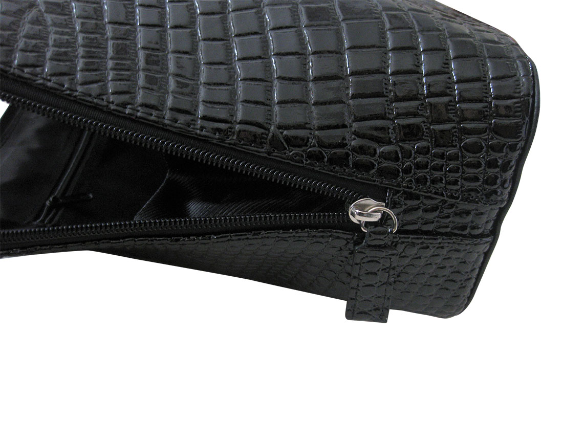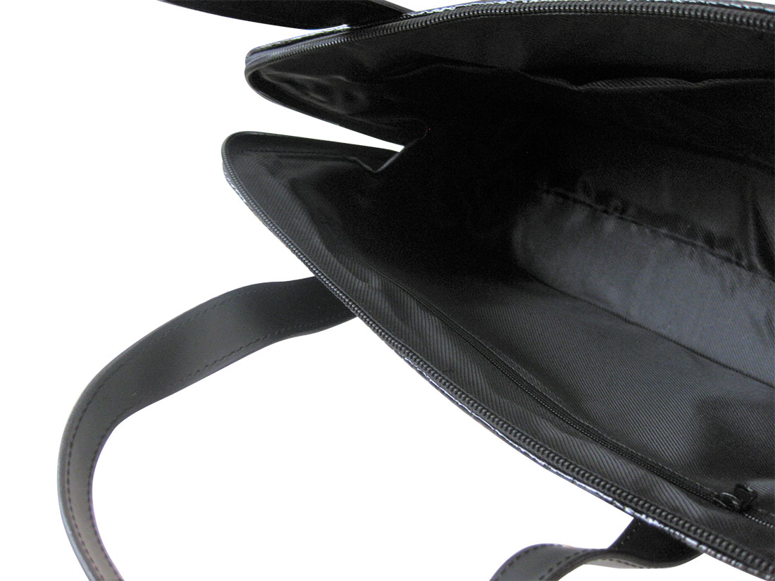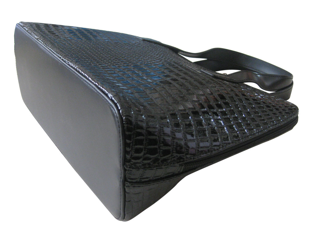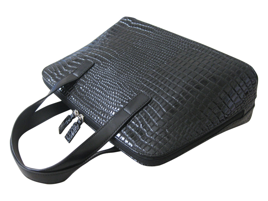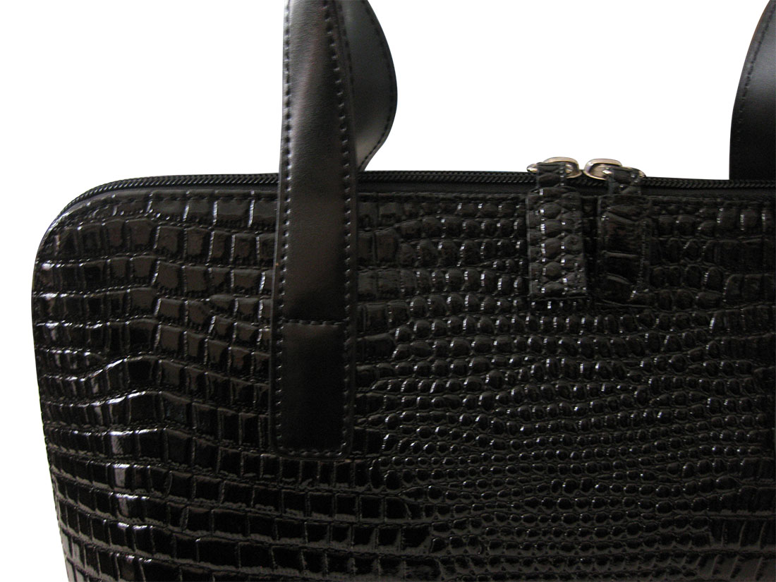 牛革にクロコダイル型押しが施されたハンドバッグ。