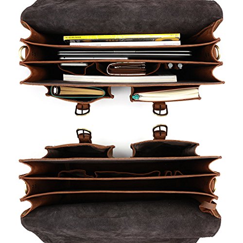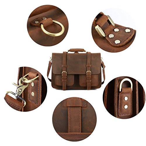 This vintage looking leather bag is perfect for up to 16" laptop; You can take Tablet PC, A4 magazine, portable textbooks, clothing, wallet, phone to this durable briefcase bag