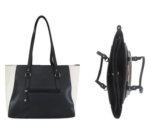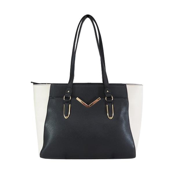 | V金具がポイントの、オシャレなトートバッグです。内側が3層になっており、持ち物の整理がしやすくなっています。 |