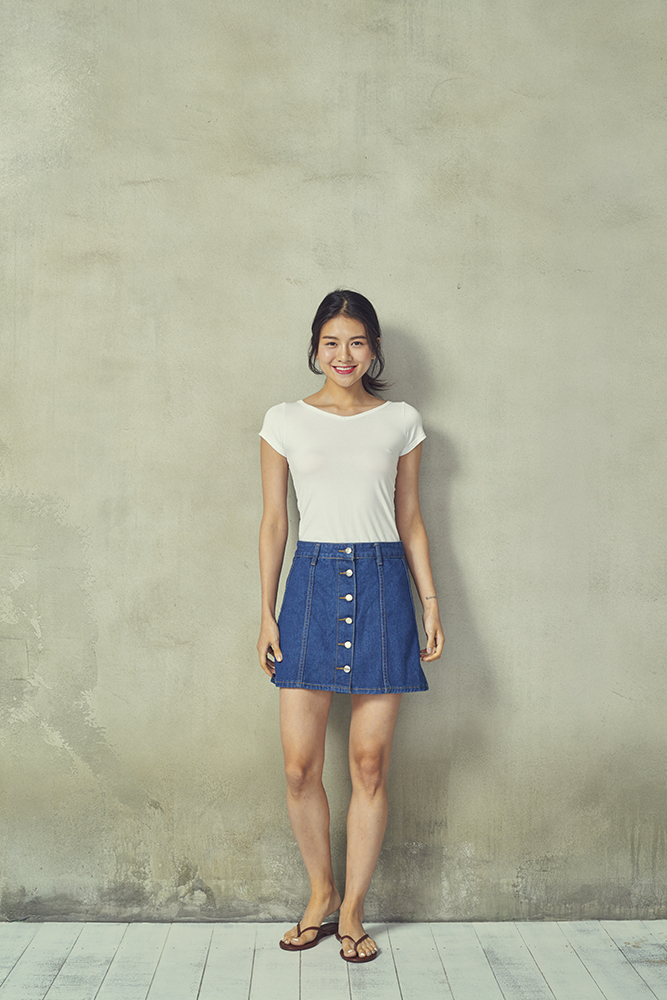 A라인으로 퍼져 다리를 길어보이게 하는 효과가 있어요.