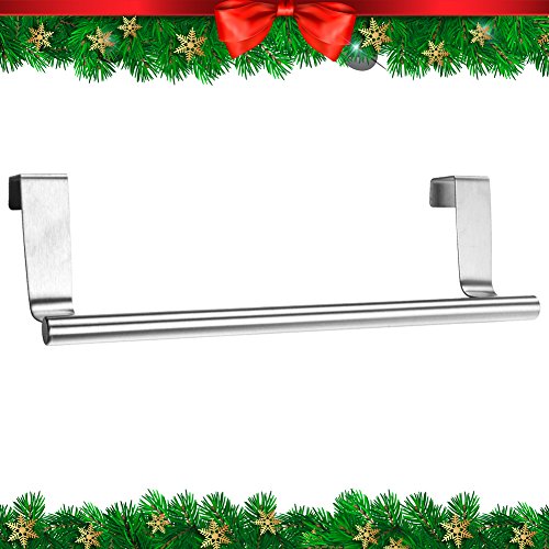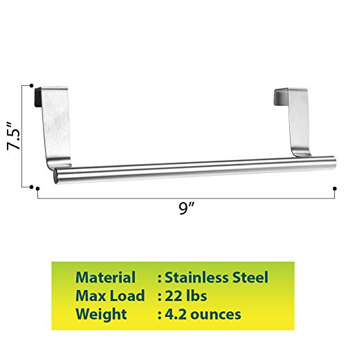 CHRISTMAS GIFT Slip On Rack | Heavy Duty Stainless Steel 9" Over the Cabinet Kitchen Dish Towel Rack / Bar with 22Lbs of Maximum Load | Effortless Installation on Any Kitchen Cabinet Door Organizer | Silver | 1177.2