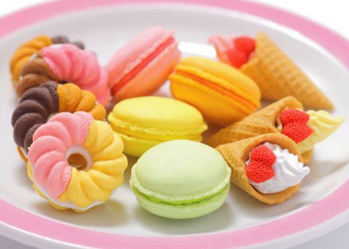 -. Title : Iwako Japanese Erasers / 10pcs./Macaroons, Donuts, Wafflecorn