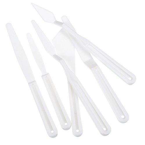- Various shape knives: 6 pieces plastic palette knife all with different shapes, meet your paint needs; Plastic material, free from the annoyance of rust or corrode