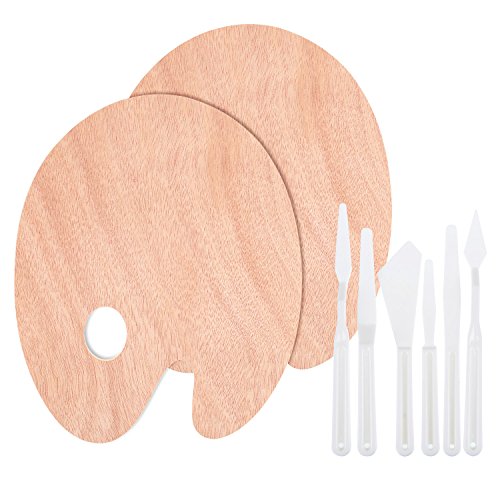eBoot 2 Pieces Wood Palettes 11.81 Inch by 9.45 Inch and 6 Pieces White Plastic Palette Knife Painting Tool Set