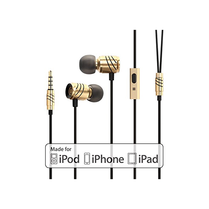 GGMM 가나《루》형 이어폰 중저음 Hi-Fi 고음질 순정 통화On-Off기능 첨부 풀 메탈 이어폰 iphone ipad iOS Android 대응 C800 (골드)