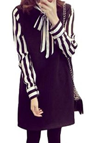 -. Title : (ニブンノイチスタイル) 1/2style 白 黒 長袖 ストライプ レトロ クラシカル ボウタイ ブラウス ワンピース レディース