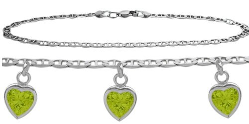 -. Title : 14K White Gold Mariner Anklet with 2.10 Carat Genuine Peridot Heart Charm