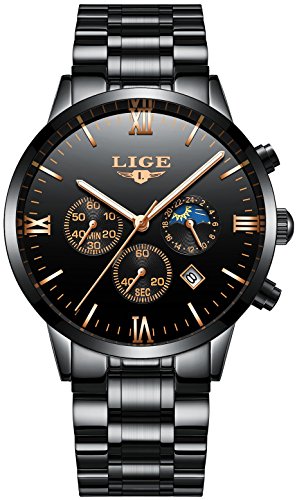 원본상품명: SPOTALEN スポテレン 腕時計 ビジネス アナログ表示 MOON PHASE 月相 LIGE9831 メンズ ウォッチ ブラック ステンレス バンド
