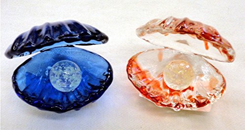 2 Glass Clam Shells with Glow in the Dark Glass Pearl Shape Inside