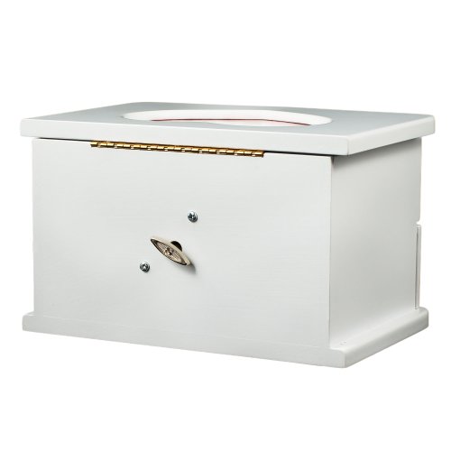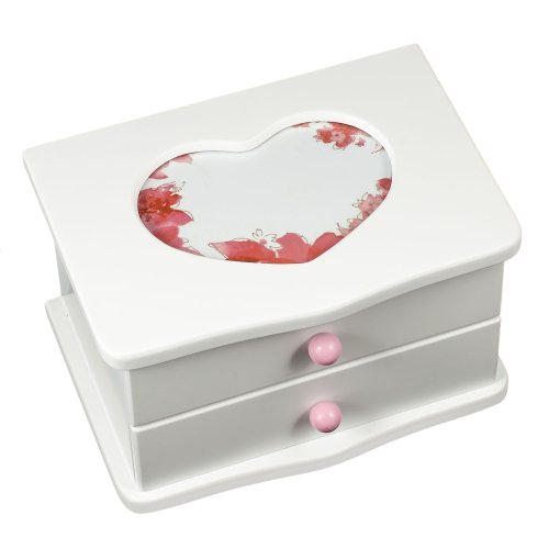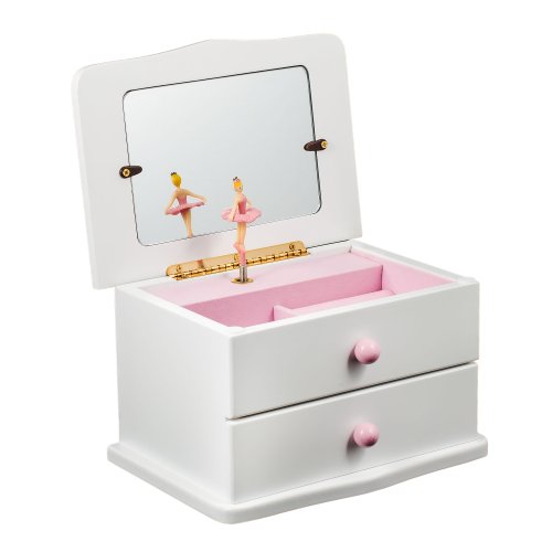 -. Title : White Wooden Musical Jewelry Box with Drawer Twirling Ballerina to "Magic Flute" Melody