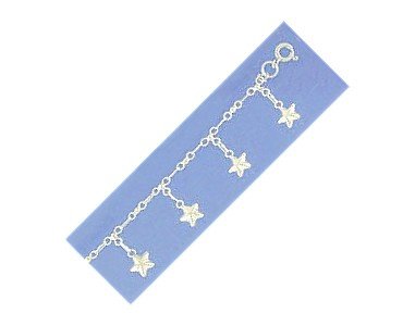 -. Title : Ladies Sterling Silver Stars Womens Anklet, Adjustable 9 1/2" - 10 1/2"