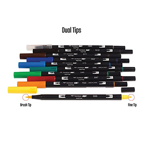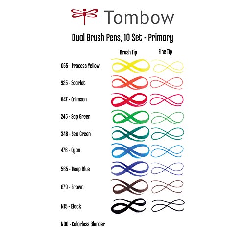 Tombow Dual Brush Pen Art Markers, Primary, 10-Pack