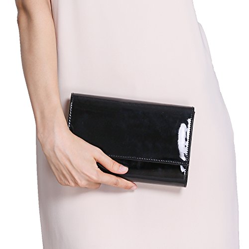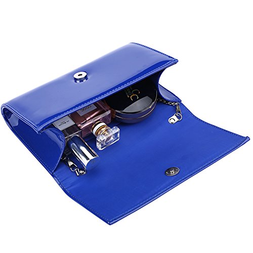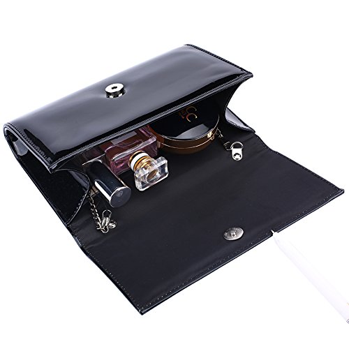 Description: 3 style in 1 bag (shoulder, clutch, purse) handbag, patent leather clutch is sure to impress. Magnetic-flap closure. Inside polyester lining with one small pocket. Inside can easily fit a cell phone, wallet, compact mirror, lip gloss, and a pack of gum. Conveniently, you can spend the night hands free with the detachable silver chain that is included. Geat for fancy events,evening out,birthday party and weddings Note: Due to the difference between different monitors, the picture may not reflect the actual color of the item. We guarantee the style is the same as shown in the pictures. Thank you!