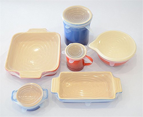 - ★POWER STRETCH--These set of 6 multi size silicone stretch lids will fit any 2.5"-8.2" containers. They are ideal for storing leftovers, taking dishes to potluck, stacking bowls, unfinished drinks or any leftover fruits and vegetables