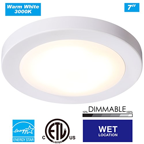 Cloudy Bay LED Flush Mount Ceiling Light,7.5",12W 840lm(100W Incandescent Equivalent),Dimmable,3000K Warm White,ETL Energy Star,Wet Location,White Finish
