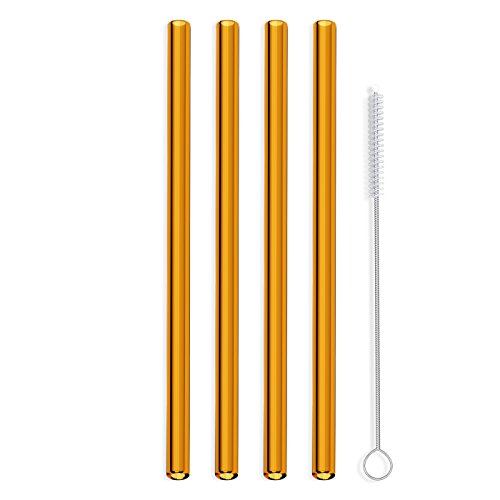 Hummingbird Glass Straws 10 inches x 9.5 mm Reusable Straws (4 Pack of Orange)