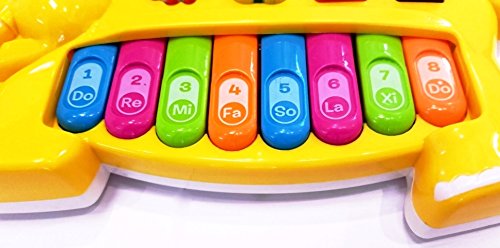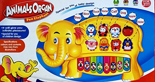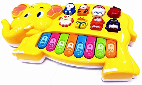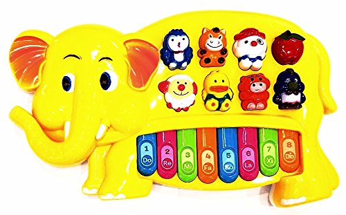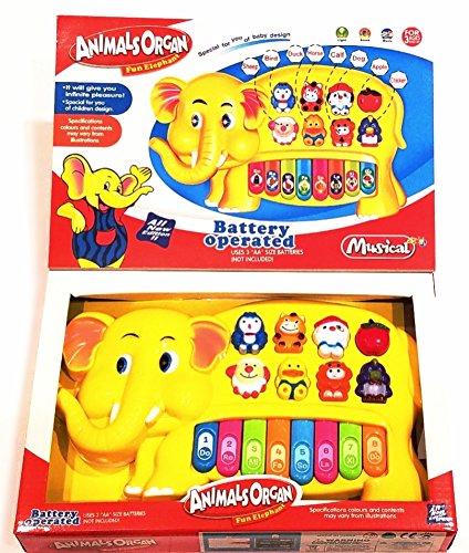 -. Feature : Elephant shaped keyboard for kids / Great for learning cognizance Each music Instrument key plays an animal sound,helping children learn and hear various animal sounds.Fun sound effects of guitar,trumpet,sax and three hand drums.The little ones can carry it around and easily push all the buttons,creating music with the toy piano keyboards. / Eight piano buttons and six light-up music buttons,each music instrument key plays an animal sound,helping children learn and hear various animal sounds.Fun sound effects of guitar,trumpet,sax / Music,lights and bright colors help stimulate baby's senses.As baby plays,new discoveries are made and key developmental skills get stronger. Batteries are not included