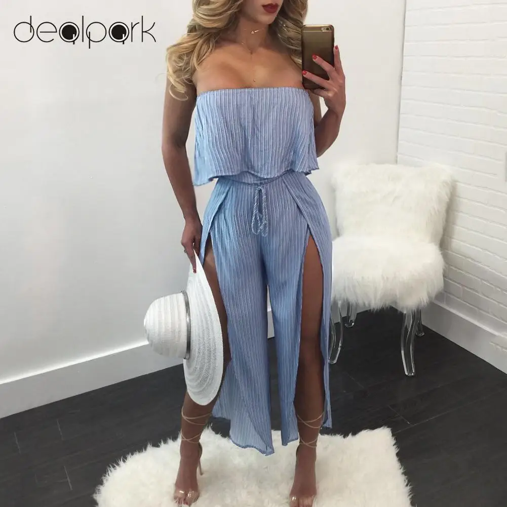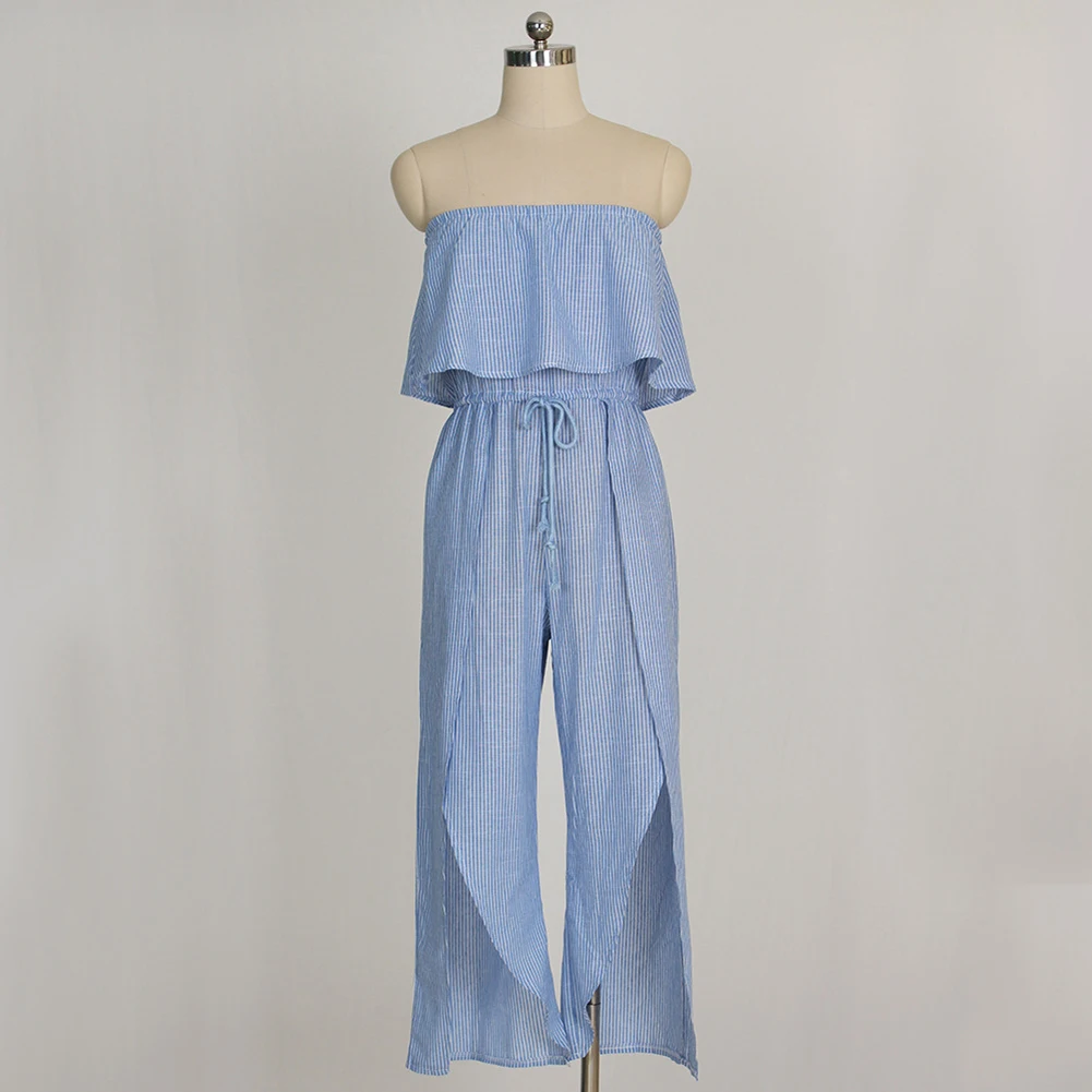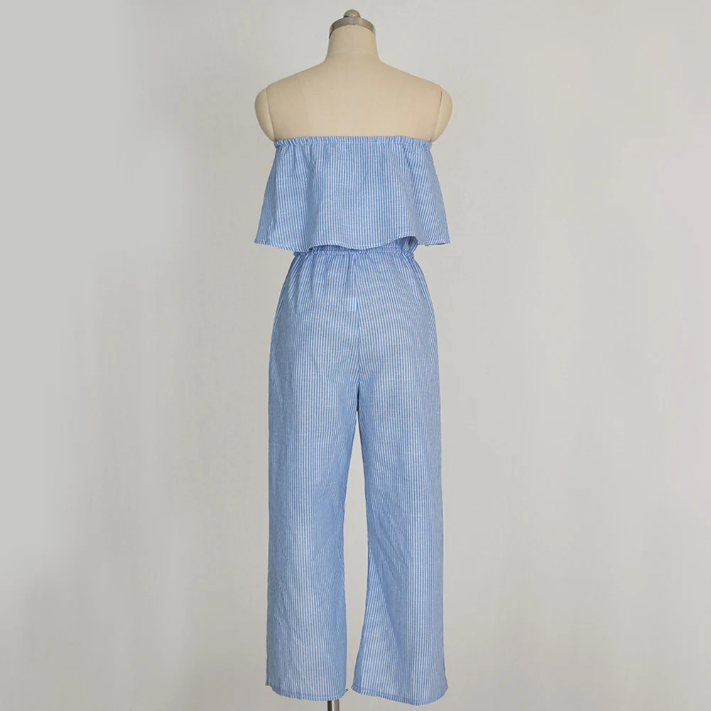 Model Number:Women Striped Jumpsuit Off Shoulder Rompers