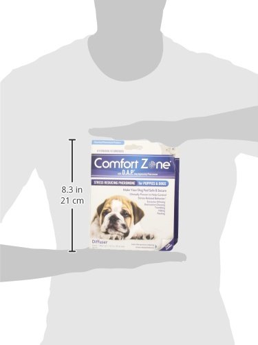 -. Binding : Misc. -. Brand : Comfort Zone -. EAN : 0039079027939 -. Feature : Reduce signs of stress associated with new puppy or shelter dog adoption or transition from a breeder / Reduce signs of stress from loud noises such as fireworks or thunderstorms / Clinically proven effective and veterinarian recommended; drug free / Contains 1 diffuser and 1 48 mL refill; additional refills sold separately / NOT recommended as a sole treatment for separation anxiety / NOT recommended for dog aggression problems -. IsAutographed : 0 -. IsMemorabilia : 0 -. Label : Comfort Zone -. Manufacturer : Comfort Zone -. Model : 100504230 -. MPN : 100504230 -. NumberOfItems : 1 -. PackageQuantity : 1 -. PartNumber : 100504230 -. ProductGroup : Pet Products -. ProductTypeName : HOME -. Publisher : Comfort Zone -. ReleaseDate : 2007-09-01 -. Size : Small -. Studio : Comfort Zone -. Title : Comfort Zone with DAP for Dogs Diffuser and Single Refill -. UPC : 039079056861